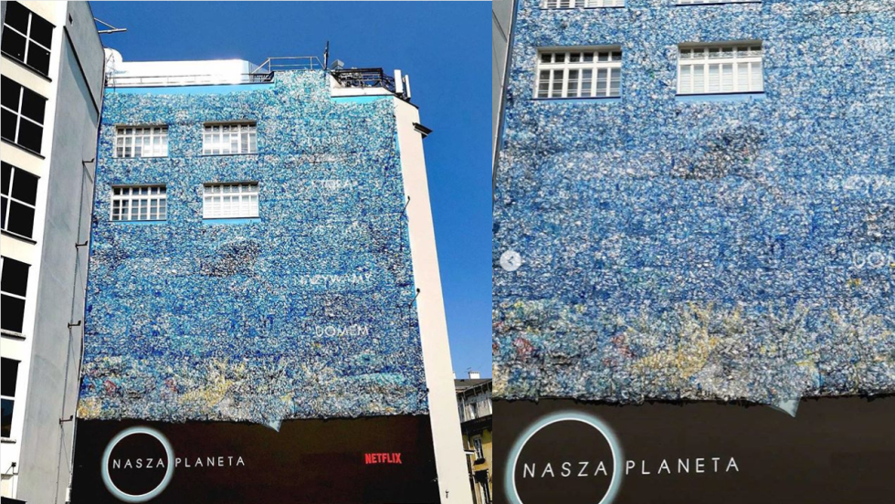 W ramach promocji serialu Netfliksa „Nasza planeta” w Warszawie pojawił się specjalny mural, jednak został on przykryty plastikowymi butelkami. Miało to na celu zwrócenie uwagi na rosnący problem zanieczyszczania Ziemi odpadami.