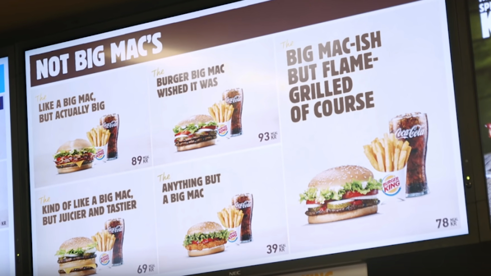 28 stycznia 2019 roku pisaliśmy o tym, że McDonald’s stracił wyłączność na używanie nazwy handlowej „Bic Mac” w Europie. Zaistniałą sytuację postanowił w swój sposób skomentować Burger King. Szwedzki oddział marki wprowadził do swojego menu serię „The Not Big Mac’s” (ang. To nie Big Maki), która obejmuje m.in. takie burgery, jak: The Burger Big Mac Wished It Was (Burger, którym chciałby być Big Mac), The Like Big Mac, But Actually Big (Prawie jak Big Mac, ale o wiele większy) oraz The Anything But Big Mac (Wszystko, tylko nie Big Mac).