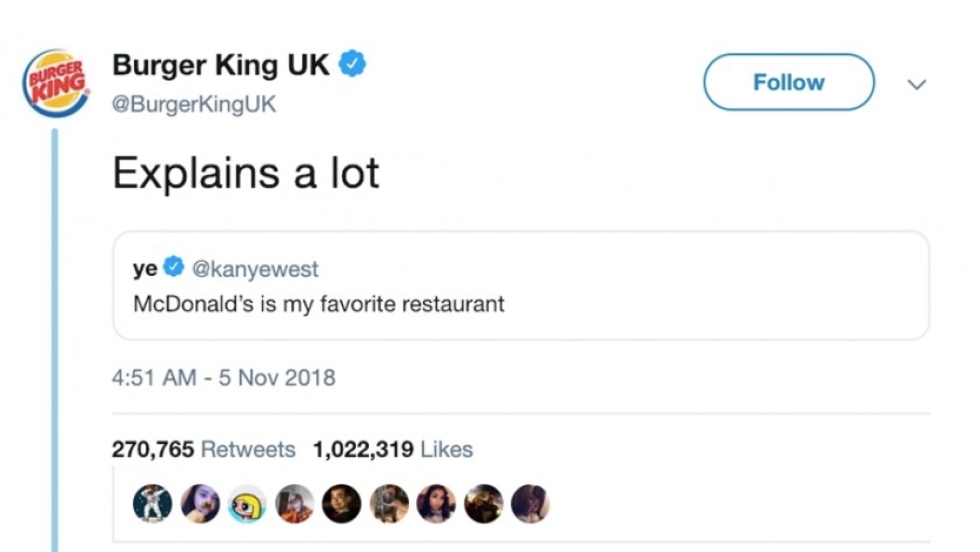 Kanye West zadeklarował na Twitterze, że jego ulubioną restauracją jest McDonald’s. Burger King odpowiedział mu na to w typowy dla siebie sposób, co docenili internauci na całym świecie.