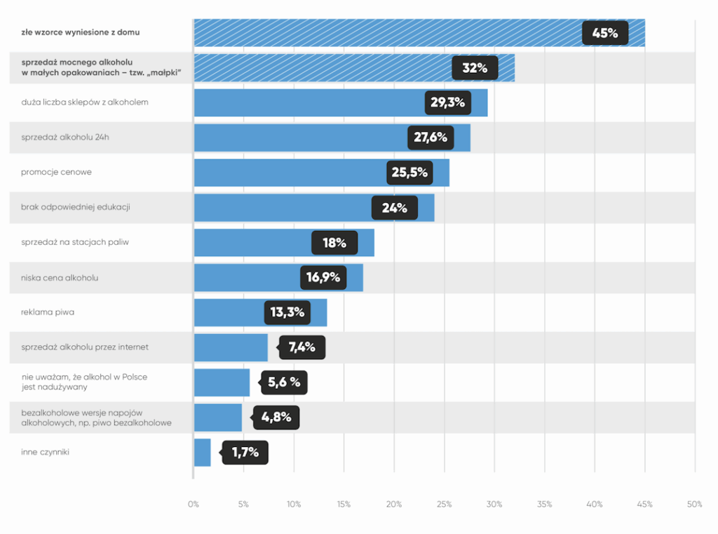 - 45 proc. respondentów wskazało „złe wzorce wyniesione z domu”,
