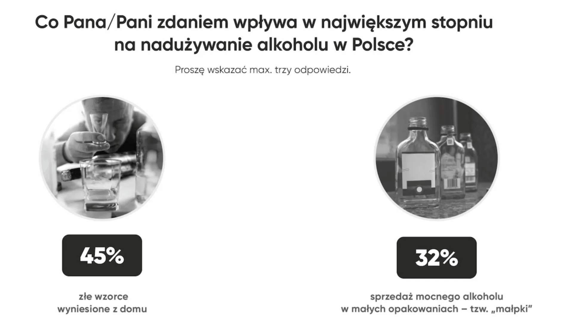 Wyniki te wskazują, że w opinii Polaków, na styl konsumpcji alkoholu w większym stopniu wpływają czynniki związane z dostępnością, ceną i formatem opakowań mocnych alkoholi niż komunikacja marketingowa.