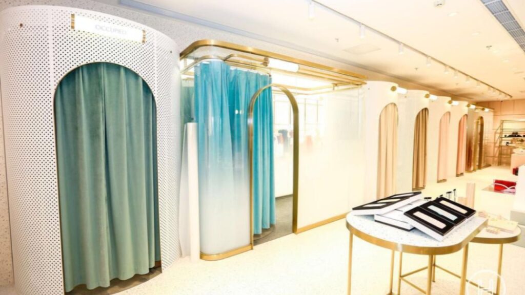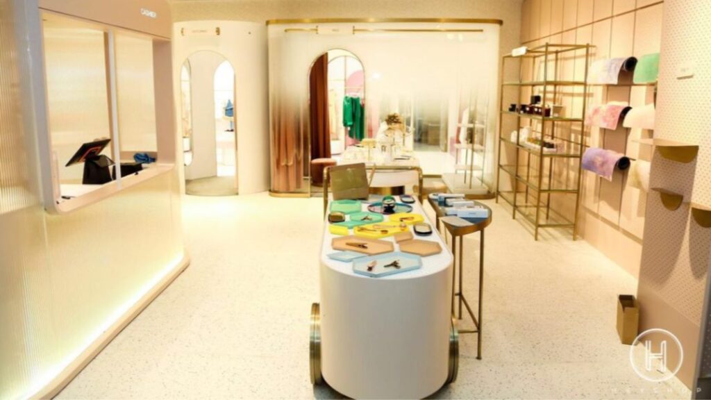 Wystrój butiku został zaprojektowany w iście futurystyczny sposób. Na półkach sklepowych nie znajdziemy wielu rzeczy. Produkty wyeksponowane są na specjalnych wyświetlaczach. Jeśli klient zdecyduje się na zakup, zostają one przyniesione z magazynu.