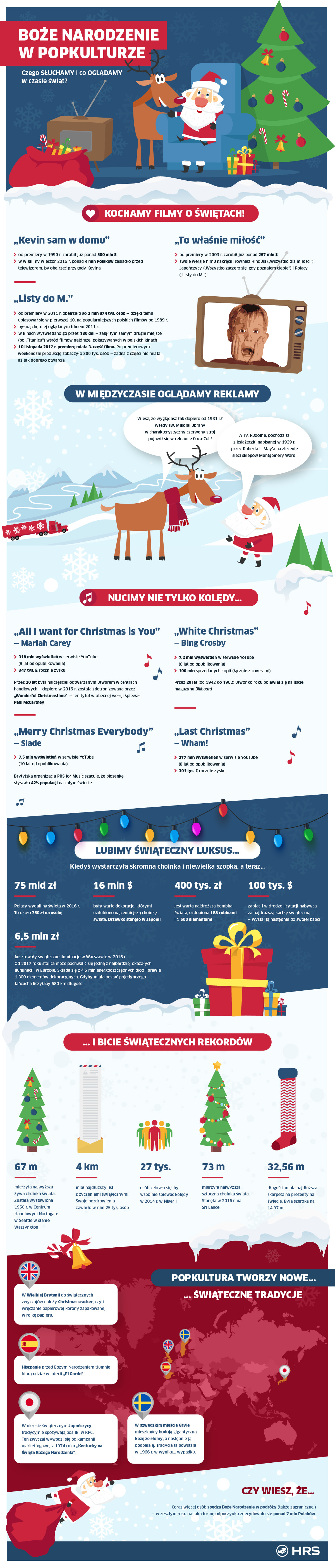Na całym świecie powstało wiele tradycji i zwyczajów związanych ze świętami Bożego Narodzenia. Wywodzą się one z legend, popkultury oraz przypadkowych wydarzeń. Czym jeszcze mogą zaskoczyć nas inne kraje i Polska w te grudniowe dni? Sprawdź przygotowaną przez HRS świąteczną infografikę i zaskocz nietypową ciekawostką swoją rodzinę przy wigilijnym stole.