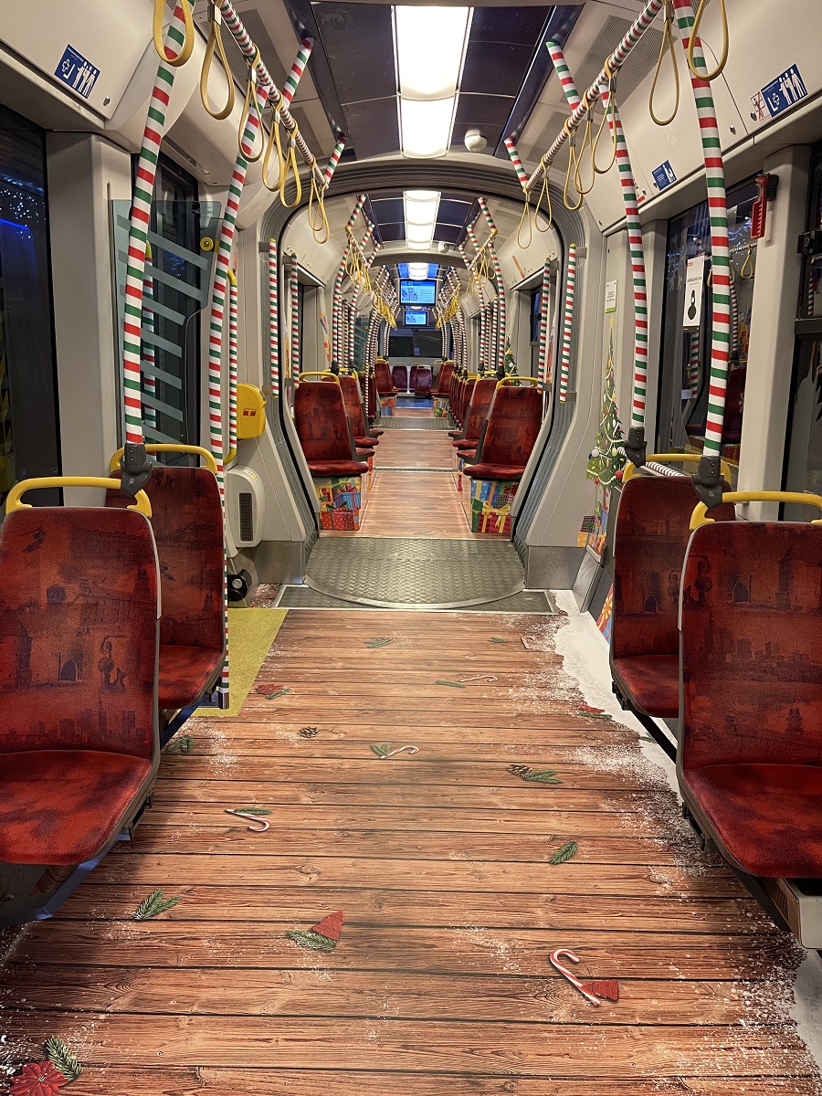 Świąteczny tramwaj został zaprojektowany w taki sposób, by w jak najdokładniejszym stopniu imitować mikołajowe sanie z ich drewnianą podłogą, kolorowymi choinkami, bożonarodzeniowymi ozdobami, górami prezentów, a nawet – z rozgwieżdżonym niebem na suficie! Wyjątkowy klimat dopełni świąteczny zapach, z dominującymi nutami wanilii, goździków oraz cynamonu.