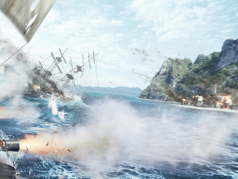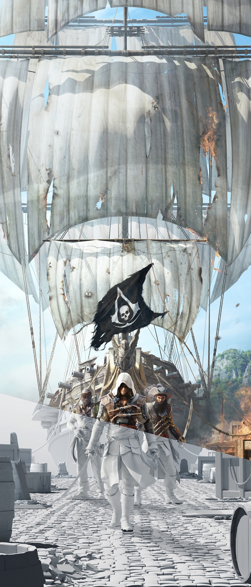 – Zaczęliśmy od kreatywnego rozwinięcia szkicu, który dostaliśmy od Ubisoftu – mówi Jaworowski. – Sam proces był standardowy: zrobiliśmy kompozycję, 3D i retusz. Natomiast najtrudniejsza była kwestia gabarytów i ilości elementów. Obie sceny są bardzo skomplikowane pod względem kompozycyjnym. Ilustracja zawiera ogromną ilość detali. W 3D zostały wymodelowane wszystkie obiekty, m.in. elementy statku, liny, postaci. Flagi i maszty to symulacje materiału.