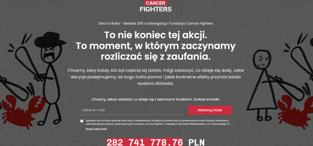 Zbiórka wciąż trwa. Fundacja Cancer Fighters przygotowała dedykowaną stronę, na której na bieżąco aktualizowana jest kwota.