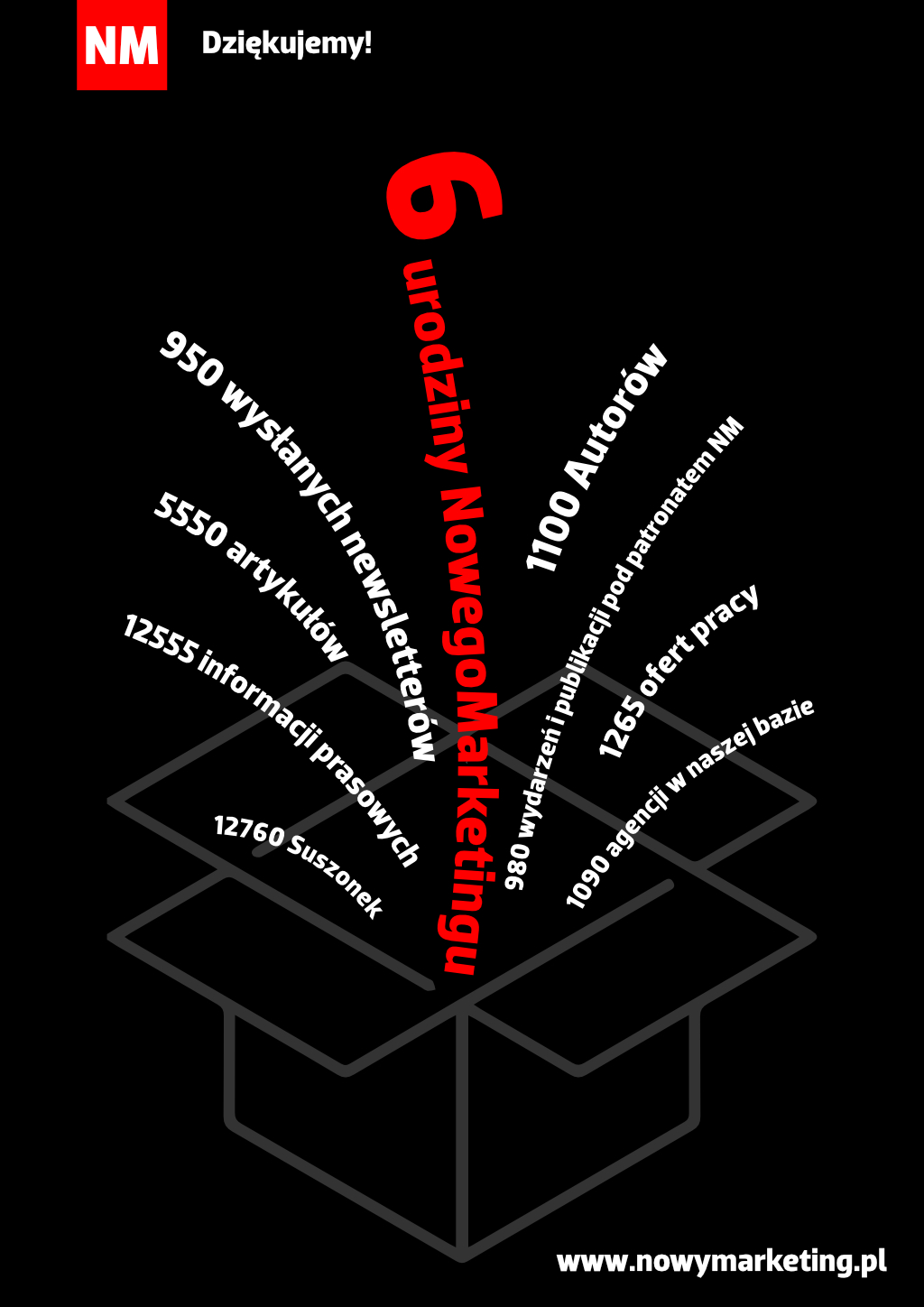 17 maja NowyMarketing skończył 6 lat. Z okazji naszych szóstych urodzin przygotowaliśmy krótkie podsumowanie działalności, w którym znajdziecie kilka statystyk NM oraz listę najpopularniejszych artykułów.