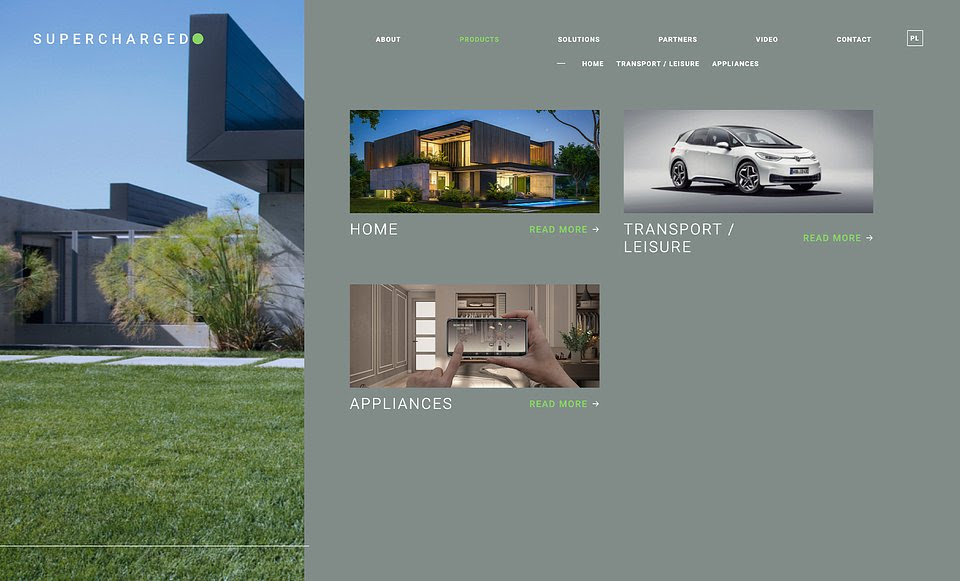 Supercharged prezentuje wizję świata, w którym dom jest początkiem i centrum autonomii energetycznej. Tam, gdzie transport jest bezpłatny, ponieważ jest zasilany przez słońce, a przedmioty, których używamy są inteligentne i połączone w jeden ekosystem. Za pomocą platformy odbiorca może w prosty sposób zaaplikować je u siebie w domu i otrzymać spersonalizowaną ofertę.