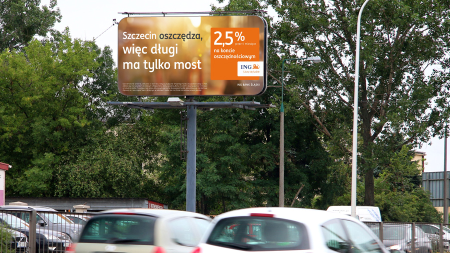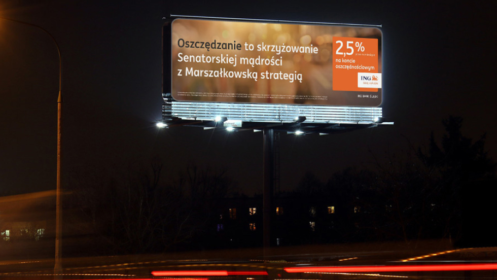 ING Bank Śląski zdecydował się w tym roku na kampanię kontekstową. Każdy z plakatów zawiera hasło zachęcające do oszczędzania i nawiązujące do miasta, w którym znajduje się nośnik.