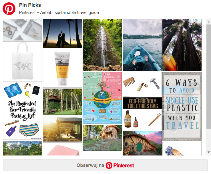 Coraz więcej użytkowników Pinteresta szuka pomysłów na to, jak ich podróże mogą być przyjazne dla środowiska. Z kolei Airbnb angażuje się w promowanie zrównoważonej turystyki, oferując dużą liczbę ekologicznych miejsc.