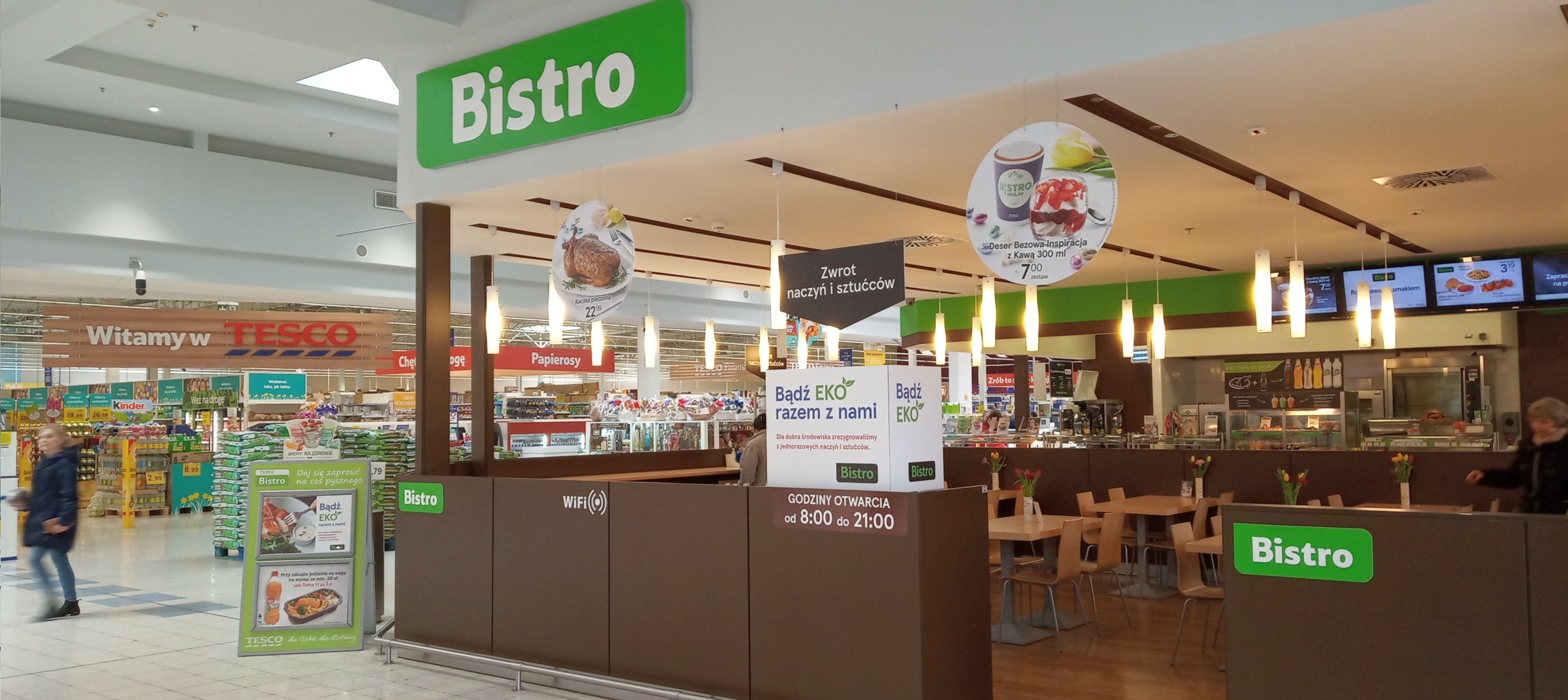 Rezygnacja z naczyń jednorazowego użytku to oszczędność rzędu 4,5 mln talerzy papierowych, które w ubiegłym roku zostały zużyte w restauracjach Bistro w Polsce. Klienci w ubiegłym roku podczas wizyty w restauracji wykorzystali również 9,5 mln plastikowych sztućców oraz ponad 500 tys. kubków papierowych. Wobec tego już wkrótce we wszystkich restauracjach będzie można spożywać posiłki korzystając z nowej zastawy – do oferty wprowadzone zostaną metalowe sztućce oraz ceramiczne kubki i talerze. Z restauracji znikną również kosze, dzięki czemu Tesco ograniczy skalę produkcji odpadów do minimum.