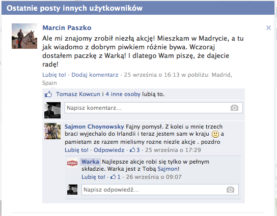 – Wszyscy zgodziliśmy się, że to świetny pomysł, idealna kontynuacja akcji Ekipa na Swoim – mówi Tomasz Kowcun z brand teamu Warki w Grupie Żywiec. – Chcieliśmy, żeby nasze działania były faktycznie reakcją na post Szymona, musieliśmy więc organizować wszystko bardzo szybko – dodaje.