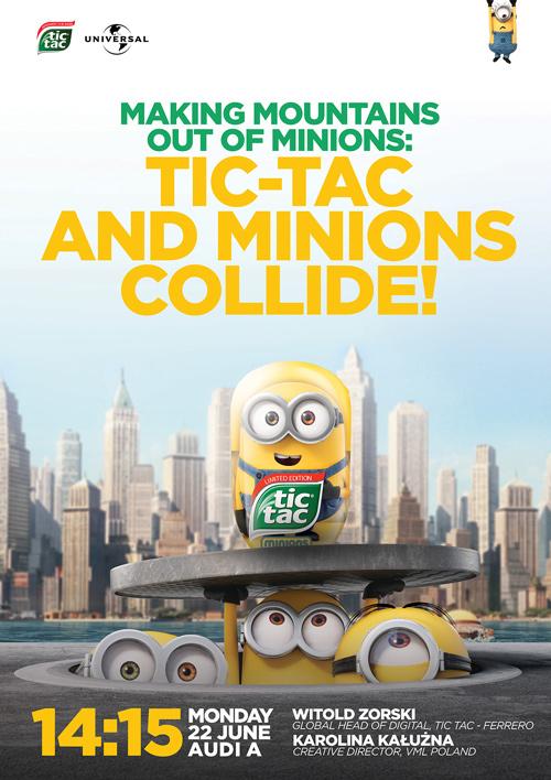 Podczas największego międzynarodowego festiwalu dla branży reklamy przedstawiciele Tic Tac i VML Poland zaprezentowali szczegóły najnowszej kampanii Tic Tac Minionki, pokazując mechanizmy, dzięki którym w oryginalny sposób połączono odświeżające drażetki Tic Tac z animowanymi postaciami Minionków: Kevina, Boba i Stuarta.