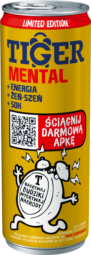 Wprowadzeniu aplikacji towarzyszy limitowana edycja puszek TIGER 250 ml. we wszystkich wariantach napoju: Mental, Restart, Classic, Zero. Unikalna grafika przykuwa uwagę i zachęca konsumentów do pobrania bezpłatnej aplikacji za pomocą QR kodu, zamieszczonego na puszce.