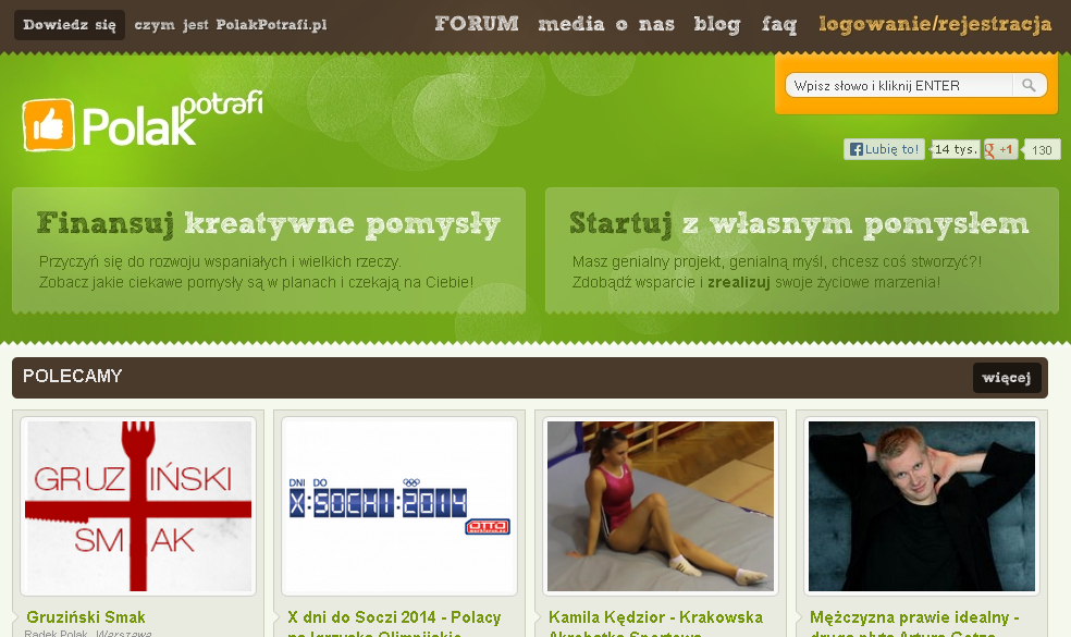 Jak już wcześniej wspomniano jedną z odmian crowdsourcingu jest crowdfunding, czyli zbieranie środków na realizację określonego celu od społeczności. Istnieje wiele portali umożliwiających przedstawienie internautom przedsięwzięcia czy sprawy, na której rzecz zbiera się środki. Jednym z najbardziej znanych, z działających na polskim rynku jest polakpotrafi.pl. Serwis umożliwia twórcom projektów zbiórkę pieniędzy na ich realizację, przy zachowaniu 100% praw własności oraz kontroli, gdyż osoby, które zdecydują się na wsparcie projektu, nie otrzymują w zamian udziałów, lecz produkty i doświadczenie. Każdy projekt, na którego realizację zbierane są środki ma określony termin, w którym cała kwota musi zostać zebrana – działa tu zasada wszystko albo nic, jeśli więc nie uda się osiągnąć założonego celu, pieniądze wracają do darczyńców. Największym zrealizowanym do tej pory za pomocą portalu projektem jest „Festiwal 'Cohabitat Gathering 2012’”, na jego realizację zebrano łącznie 97877zł, co stanowi 108% potrzebnej kwoty.