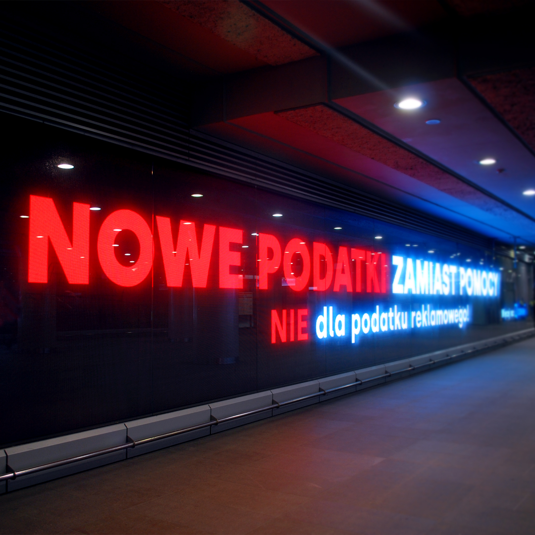 W Warszawie pojawiły się już w piątek hasła kampanii antypodatkowej na nośnikach cyfrowych (DOOH), a do końca tygodnia pojawią się też na billboardach i pozostałych nośnikach w wielu polskich miastach.