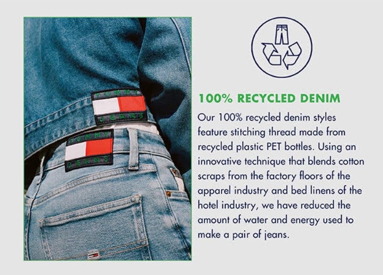 100% Recycled Denim – W swojej nowej kolekcji marka wykorzystała denim, który wykonany jest w 100% z recyklingu, natomiast nici do szycia są wykonane z odzyskanych butelek PET.