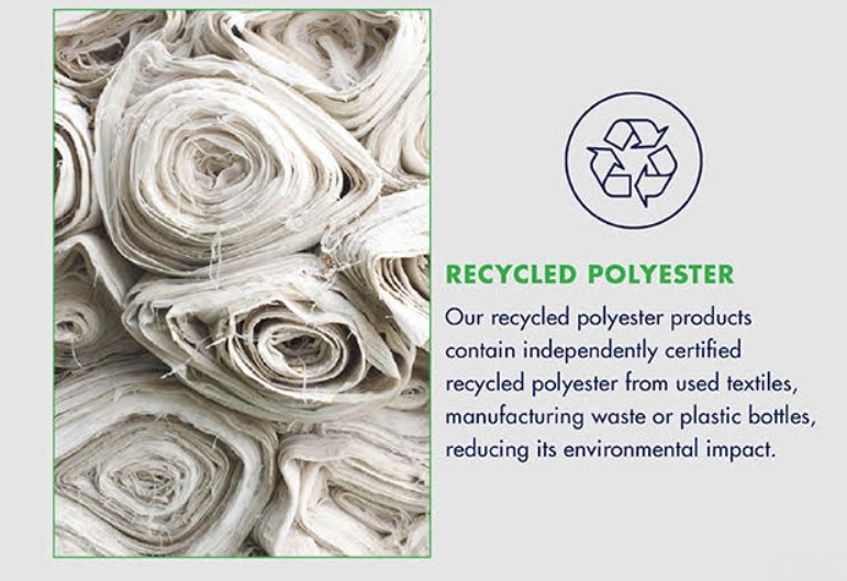 Recycled polyester – Ponadto, produkty wykonane z poliestru z recyklingu zawierają certyfikowany poliester z recyklingu zużytych tekstyliów, odpadów z produkcji lub plastikowych butelek. Dzięki temu marka zmniejszyła wpływ produkcji na środowisko.