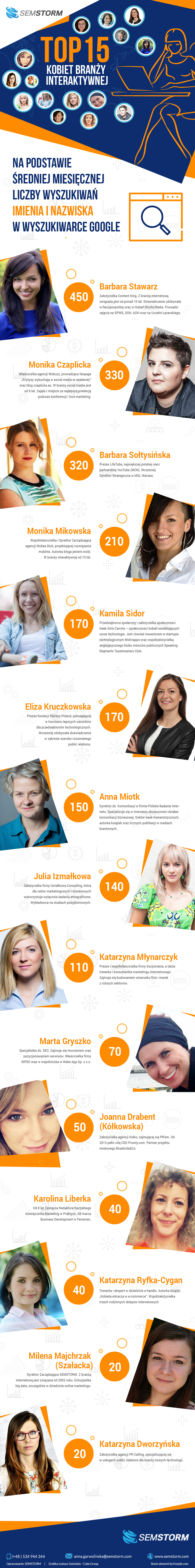 Wśród zaprezentowanych na infografice kobiet znajdują się CEO, właścicielki agencji, prelegentki, wykładowczynie, prezeski, specjalistki SEO, trenerki czy ekspertki.
