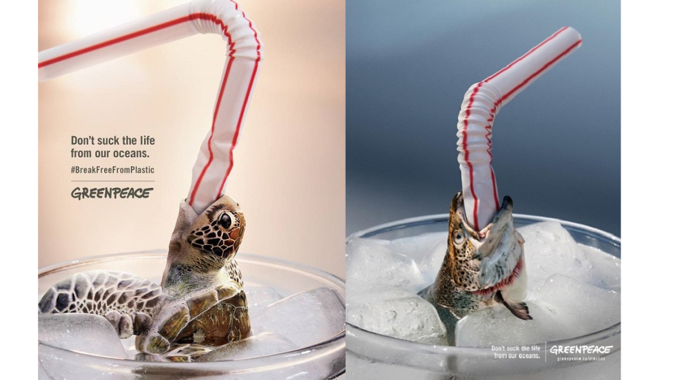 W 2018 roku kanadyjska agencja Rethink przygotowała dla organizacji Greenpeace kampanię społeczną „Don’t suck the life from our oceans”, która miała na celu zwrócenie uwagi na to, jak szkodliwy wpływ na nasze środowisko ma wykorzystywanie plastikowych słomek na masową skalę. Seria szokujących zdjęć miała za zadanie zachęcić zarówno małe, jak i duże przedsiębiorstwa do ponownego przemyślenia wykorzystywania przez nich plastikowych produktów.