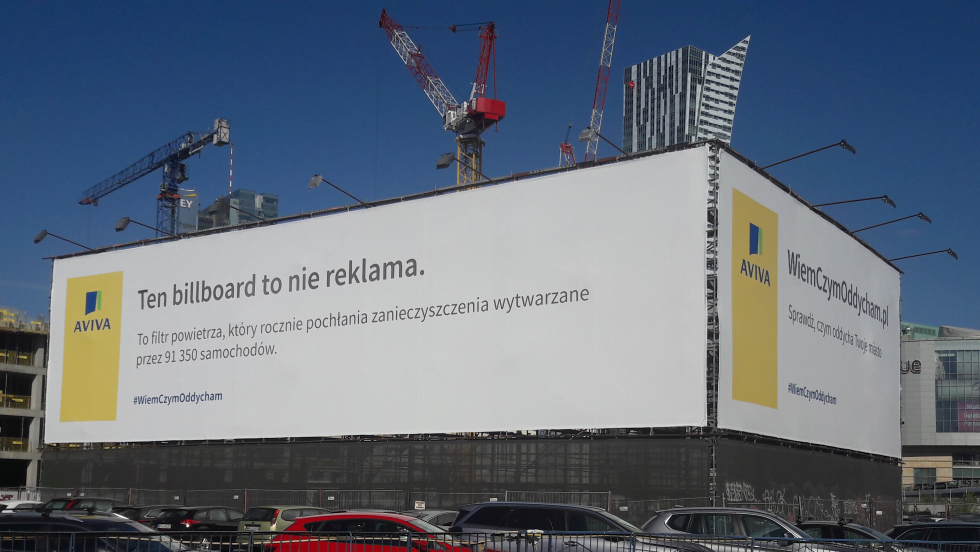 W październiku 2018 roku w centrum Warszawy, obok skrzyżowania Alei Jerozolimskich i al. Jana Pawła II, stanął pierwszy w Polsce billboard będący jednocześnie filtrem powietrza. Był on częścią akcji „Wiem, czym oddycham” marki Aviva.