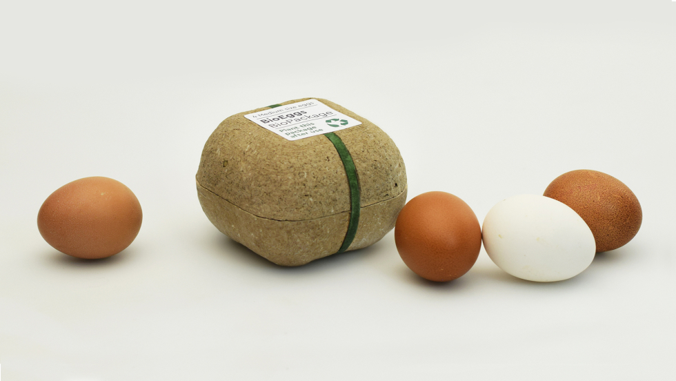Grecki projektant George Bosnas wpadł na pomysł nietypowe opakowania na jajka w duchu zero waste. Biopack, bo taką nazwę nosi projekt artysty, wykonany jest z mąki, skrobi, ścieru drzewnego oraz nasion. Co ciekawe, gdy zużyjemy już opakowanie, wcale nie musimy go wyrzucać – po zasadzeniu w doniczce i w miarę regularnym podlewaniu, w ciągu 26 dni wyrośnie z niego nowa roślinka.