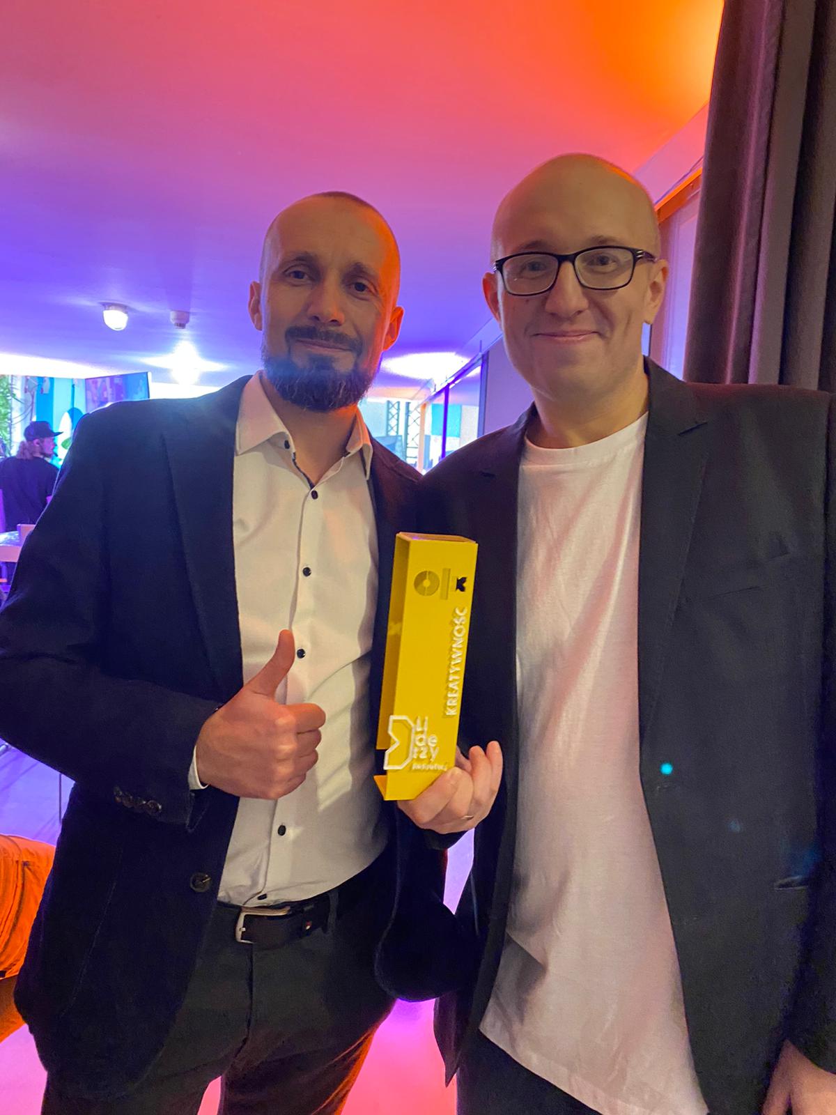 Na zdjęciu, od lewej: Tomasz Kuchta – dyrektor operacyjny Centrum Dystrybucyjnego w Woli Krzysztoporskiej i Tomasz Bogusławski – pracownik Centrum, bohater clipu.