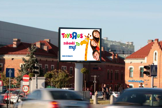 Marka Toys”R”us wykorzystała w kampanii możliwość ekranów zintegrowanych systemem MYLED, która polega na rotacji i podmianie komunikatu. Oznacza to, że w ramach jednej realizacji wyświetlają się różne spoty prezentujące inną ofertę, którą firma Toys”R”us, przygotowała dla swoich klientów. Wykorzystanie tej możliwości, pozwoliło firmie reklamować w przestrzeniach miast szeroką ofertę produktową.
