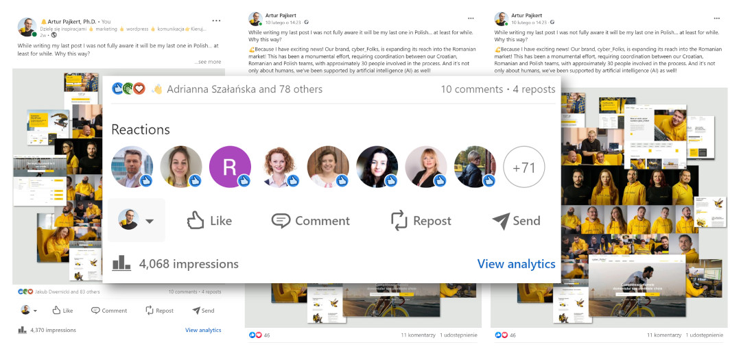 - Jakiś czas temu testowałem użyteczność ChatGPT przy tworzeniu contentu (postów) na social media. I muszę przyznać, że tu sprawdził się naprawdę nieźle – zaproponowana treść wymagała tylko niewielkich poprawek, a post wygenerował organiczny zasięg i interakcje.