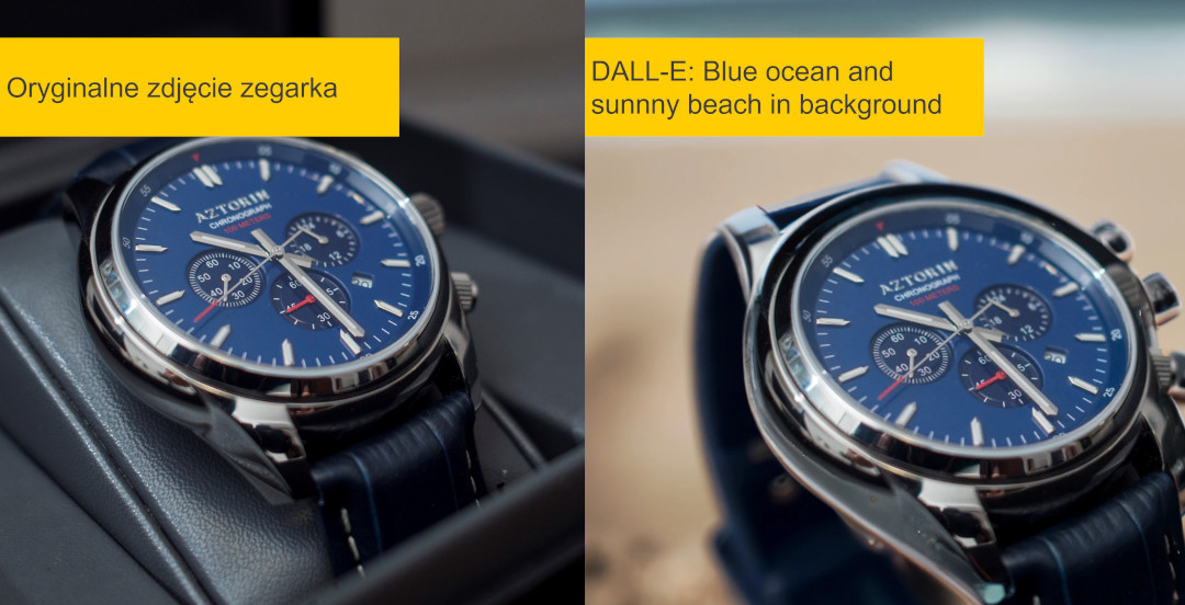 To mój zegarek, chwilę po zakupie. A obok mój zegarek na plaży. Choć nigdy nie byłem z nim na plaży. I oczywiście, w XXI wieku zmiana tła i taka obróbka zdjęć to nie rocket science, a słowo photoshop odmieniają przez przypadki przedszkolaki. Natomiast to, co jest nowością, to niesamowicie szybka demokratyzacja tego typu „opcji” i fakt, że dziś każdy, bez dużego budżetu, grafika na etacie czy choćby podstawowych kompetencji graficznych jest w stanie poprawić wygląd i atrakcyjność zdjęć produktów w swoim sklepie. Mało tego – z raz zrobionych zdjęć można później korzystać nieskończenie wiele razy, osadzając produkty w najrozmaitszych kontekstach i sytuacjach. Dla początkującego e-commerce – po prostu fantastyczna opcja.