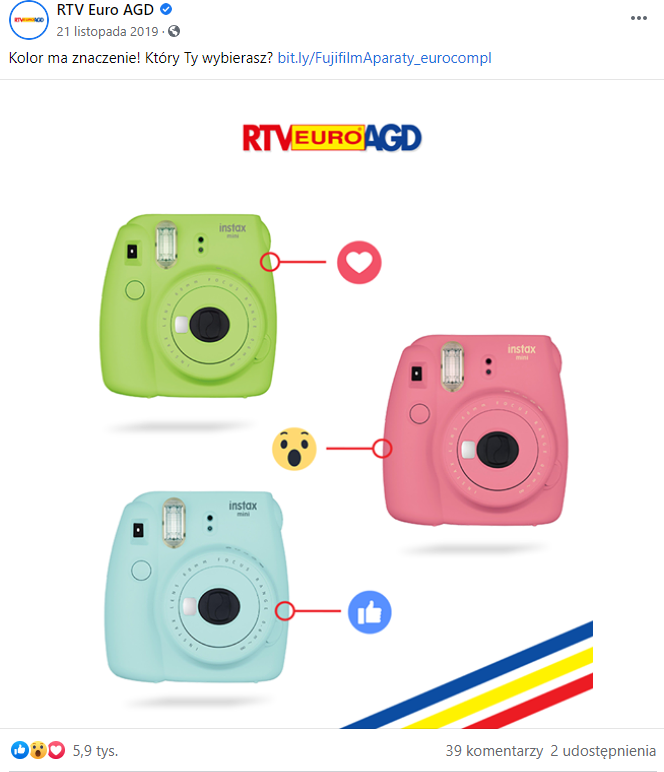 praktycznie każda marka, sklep, usługa czy osoba posiada swoje social media. To świetne miejsce do obserwacji zachowań użytkowników i wyciągania wniosków (oczywiście, nie mówimy o strategicznych elementach). Tu z pomocą przychodzą np. Facebook i Instagram. Ten pierwszy pozwala weryfikować preferencje użytkowników m.in. za pomocą emotikon reakcji. Obecnie dostępnych jest 7 ikonek, które marki wykorzystują skutecznie do pozyskiwania szybkich informacji. Dla przykładu – prowadzisz lodziarnię i chcesz poznać opinie na temat smaków swoich produktów – które są ulubione lub na jakie nowe zdecydować się w procesie produkcji. Wówczas tworzysz post, którego grafika obok zdjęć z lodami posiada wizual ikonek reakcji, a fani, poinstruowani tekstem wpisu, reagują odpowiednią ikoną na dany smak. Im więcej fanów – tym zawsze zwrot informacyjny wyższy i konkretniejszy.