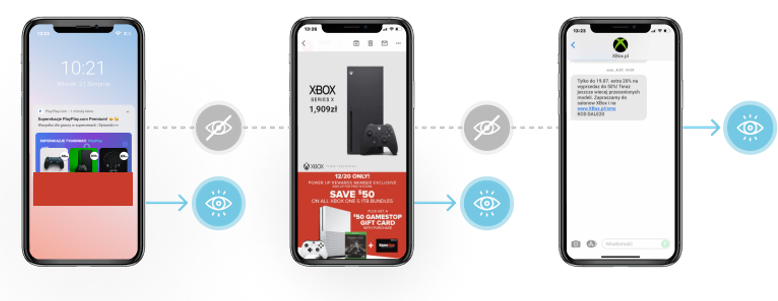 Kolejnym aspektem jest dopasowanie grafik, które stosujemy w wiadomościach MMS i e-mail oraz w notyfikacjach Push, które powinny być dopasowane do całości komunikacji marketingowej.