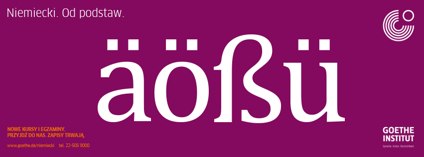 Kreacje opierają się na tych, charakterystycznych dla języka niemieckiego literach osadzonych w na prostych, zwracających uwagę tłach – kolorach identyfikacji Goethe-Institut.