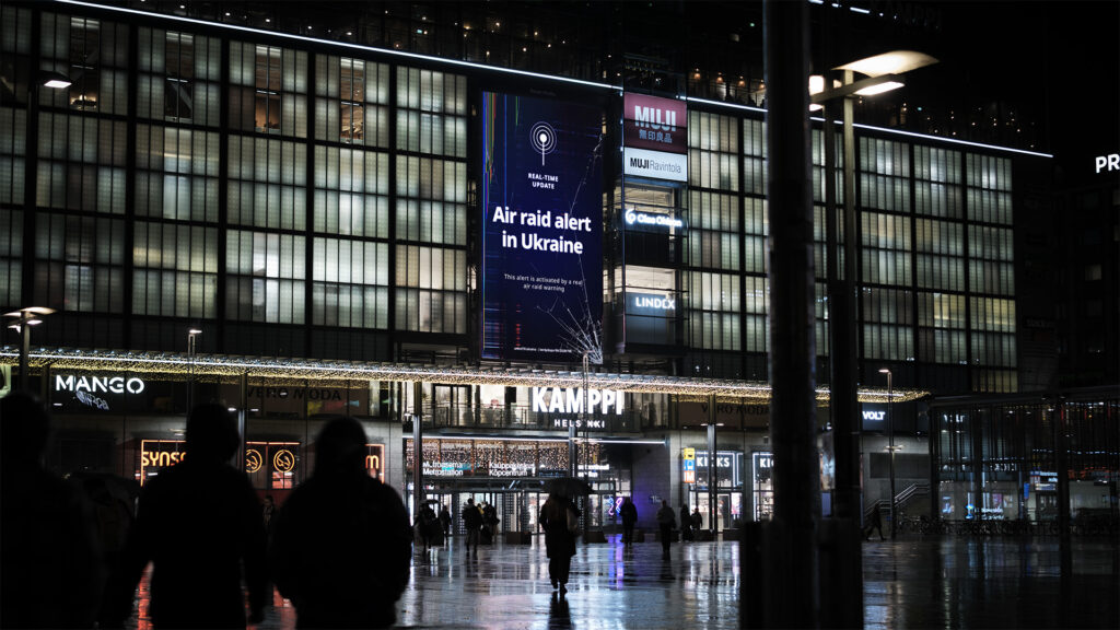 W Helsinkach pojawiły się cyfrowe billboardy, na których wyświetlane są komunikaty „Dzieci na Ukrainie wciąż potrzebują wsparcia”, informujące w czasie bieżącym o kolejnych nalotach w Ukrainie. Aby godzina ataków była jak najbardziej aktualna, UNICEF Finlandia korzysta z danych z aplikacji Air Alarm, która obejmuje sześć największych miast Ukrainy.