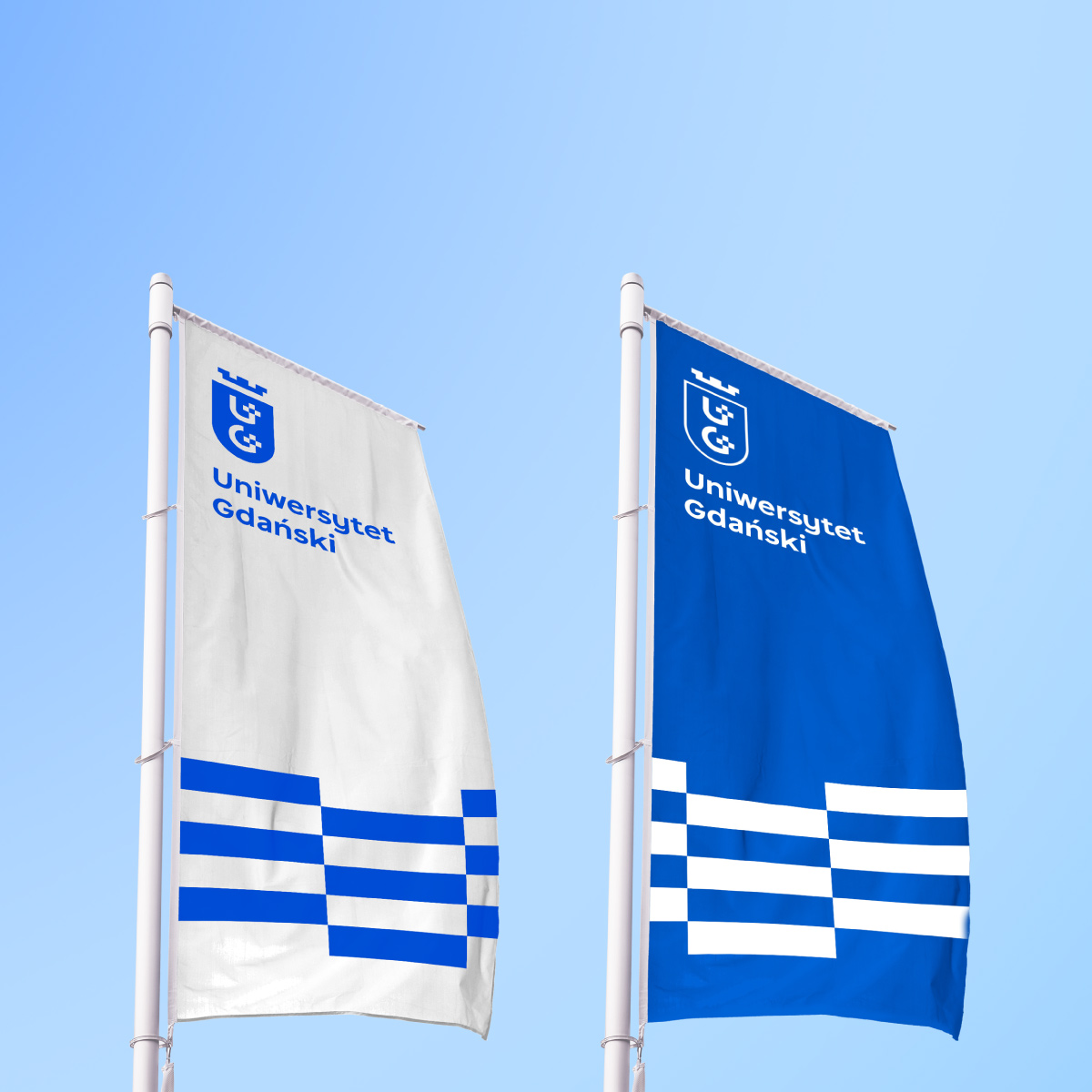 Jednak ten znak to już przeszłość, gdyż Gdańsk zdecydował się na nowocześniejszą formę, która będzie skalowalna i podkreśli obecny charakter uczelni. Co ciekawe, w nowej wersji stworzonej przez studio Spectro, udało się zachować elementy z poprzedniego logo (krzyżyki i korona), ale mają one zupełnie inną, „pikselową” formę. W środku tarczy widzimy ponownie litery U i G.