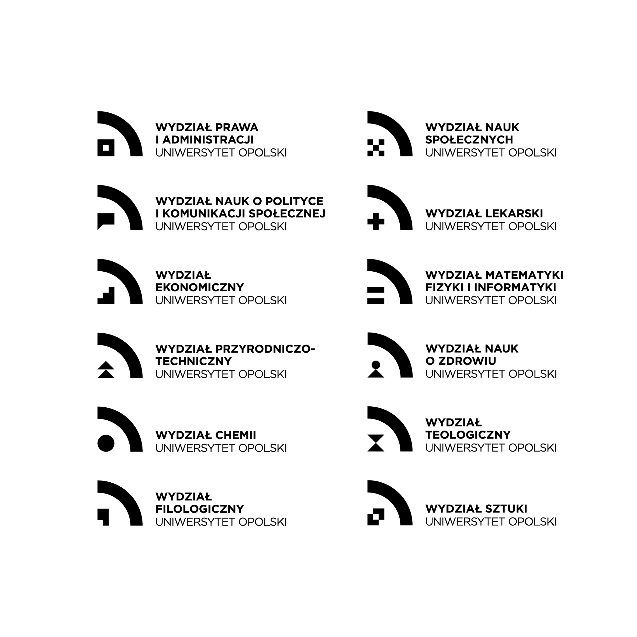 Sytuacja nieco komplikuje się w momencie, gdy zauważymy, że poszczególne katedry mają inne sygnety – oczywiście „zaszyfrowane” tak, aby linie odpowiadały poszczególnym literom w nazwie. W tej kwestii mam mieszane uczucia – dla osoby nieznającej koncepcji może to wyglądać nieco przypadkowo, a to zaburza spójność całego projektu. Szczególnie, że duży sygnet dominuje w logo i ściąga całą uwagę.