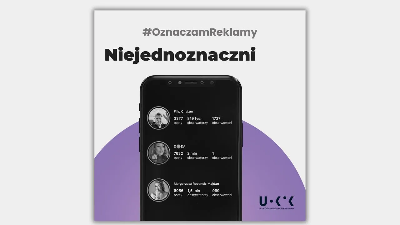 – Trójka influencerów promowała produkty różnych marek, nie używając jednoznacznych oznaczeń. Publikacje komercyjne były podobne do materiałów neutralnych również w treści i stylu, np. sugerowały spontaniczność wyboru produktu lub odpowiedź na pytania odbiorców. Zdarzało się, że były oznaczane jedynie wzmianką o marce, niejednoznacznie lub w niewidocznych miejscach – podsumowuje Prezes UOKiK Tomasz Chróstny.