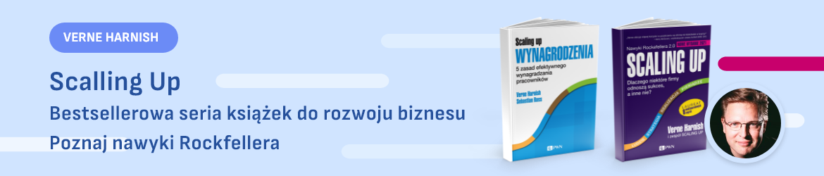 Publikacje „Scaling Up. Wynagrodzenia” i „Scaling Up. Dlaczego niektóre firmy odnoszą sukces, a inne nie?” ukazały się nakładem Wydawnictwa Naukowego PWN. Dla naszych czytelników dostępny jest kod zniżkowy -25% od ceny detalicznej na wersje drukowane wszystkich książek dostępnych w ofercie PWN (nie dotyczy ebooków oraz produktów z outletu). Kod jest aktywny w dniach 23.06 – 07.07.2023.