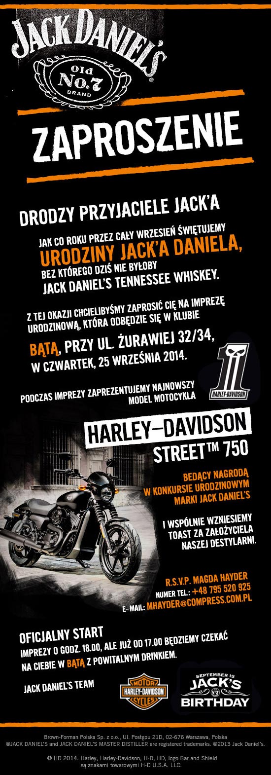 Już 25 września w klubie Bątą odbędą się urodziny Jack'a Daniela.