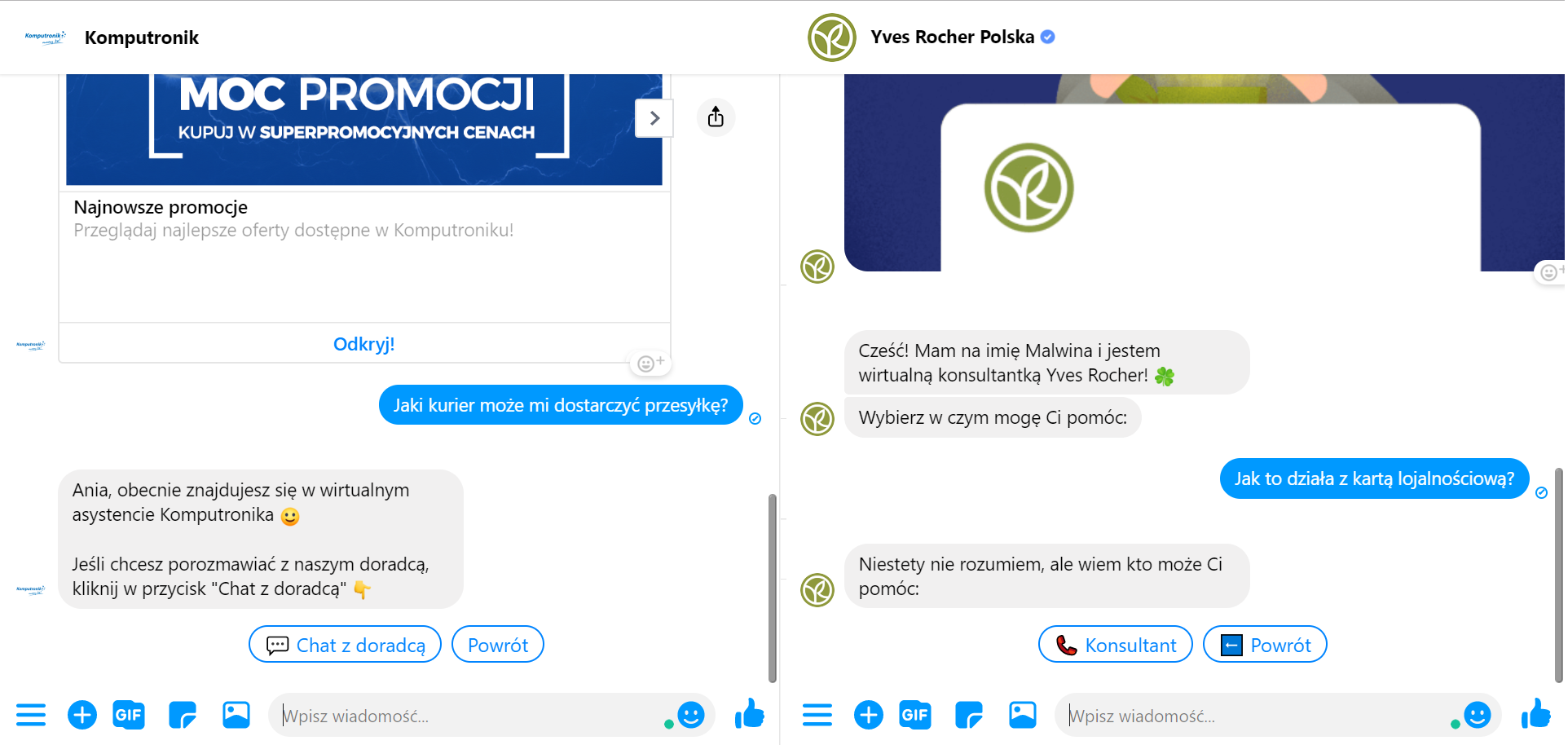 - skrótowy/hasłowy („Reklamacja”, klikanie w predefiniowane pytania, smart replies).