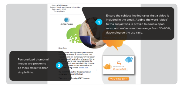 SundaySky w cytowanych badaniach stwierdza, że jeśli w treści wiadomości e-mail umieścimy film video, który odpowiada zainteresowaniom klienta, otwieralność może wynieść 40% – 60%. Warunkiem jest precyzyjnie stargetowany przekaz. Badacze z SundaySky obrazowo tłumaczą, że treść powinna być dokładna, rzetelna i rzeczywista… jak wyciąg z Twojego konta. I idą w swoich rozważaniach o krok dalej. -„Jeśli w odtwarzaczu video zobaczymy elementy personalizujące komunikat (np. swoje imię), prawdopodobieństwa kliknięcia przycisku „play” wynosi 80% – 99%”.