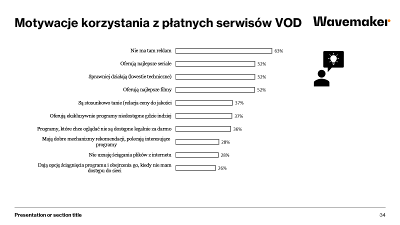 To, w połączeniu z karierą wolnych od reklam serwisów subskrypcyjnych (Netflix, HBO Go), które przyzwyczaiły widzów do komfortu oglądania bez reklam, mogło wpłynąć na tegoroczny wynik VOD w badaniu VideoTrack Wavemaker. Irytacja reklamami w tym medium jest najwyższa w grupie jej najaktywniejszych użytkowników, czyli osób w wieku 16-24 lata.