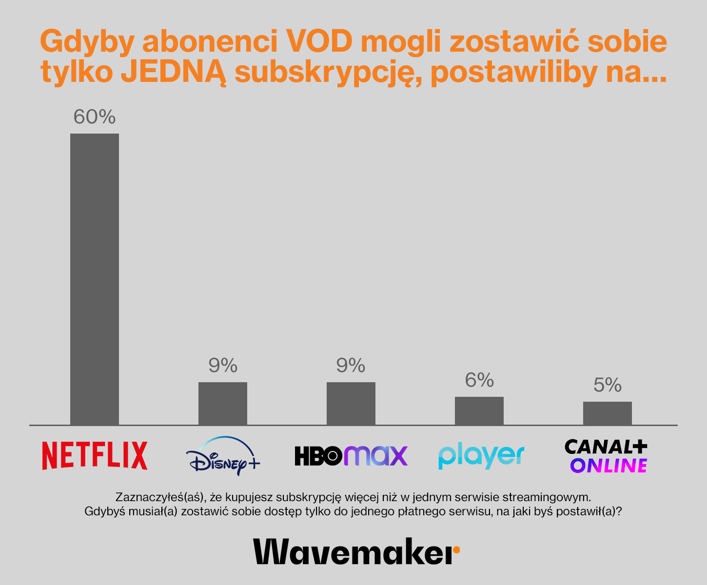 Na rynku polskiego streamingu król jest jednak jeden – przynajmniej na razie. VideoTrack VII dowodzi niezachwianej pozycji Netfliksa w Polsce, który pod względem popularności wyprzedza o kilka długości swoich konkurentów. Jest też obecnie marką pierwszego wyboru na rynku subskrypcyjnego VOD, a także ostatnią, z której polscy użytkownicy streamingu zrezygnowaliby.