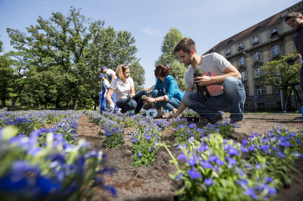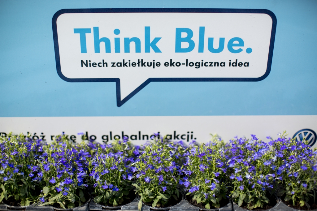 W sadzenie niebieskich kwiatów włączyli się także pracownicy Volkswagen Group Polska, którzy na skwerze przed poznańską siedzibą firmy posadzili niebieskie lobelie. Z akcją związane są także działania wewnętrzne zachęcające pracowników centrali oraz obu fabryk Volkswagena w Polsce do wcielania w życie zasad Think Blue, zarówno w pracy, jak i poza nią.