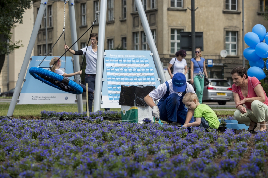 Volkswagen Group Polska rozpoczyna działania w ramach kampanii Think Blue. Miejskie skwery w Poznaniu, Gdańsku i Toruniu zakwitną na niebiesko. Przy nich staną huśtawki zachęcające do chwili relaksu i szukania inspiracji do proekologicznych działań. Przy skwerach pojawią się także tablice z torebkami nasion niezapominajek, które można oderwać, by wesprzeć kiełkowanie idei Think Blue, siejąc je w ogródku, na balkonie czy miejskim placu. Akcja ma przybliżyć ideę Think Blue i podkreślić związany z nią czynnik zabawy i aktywności.