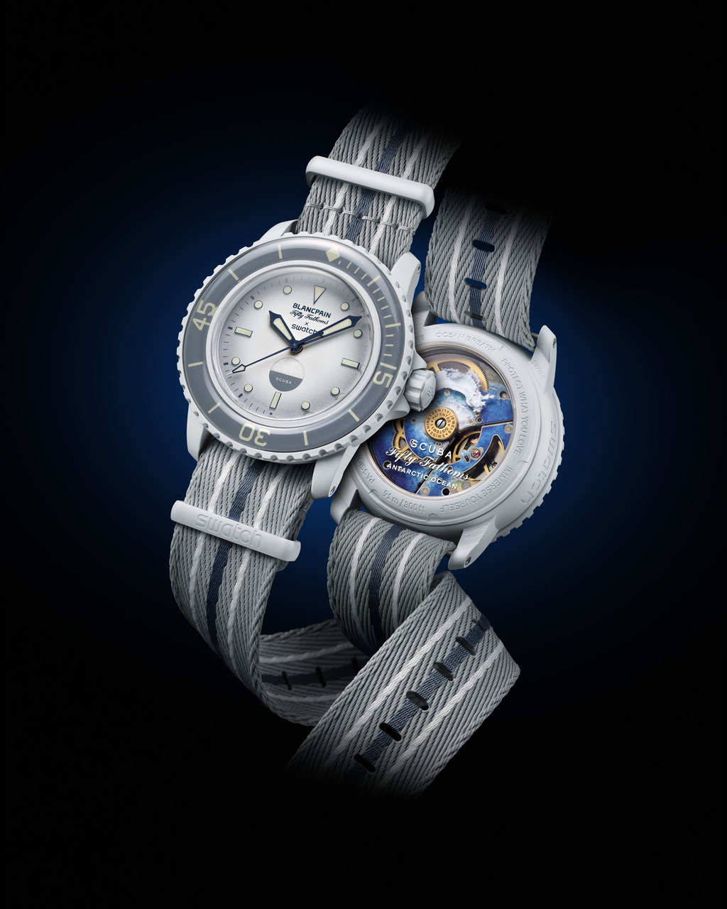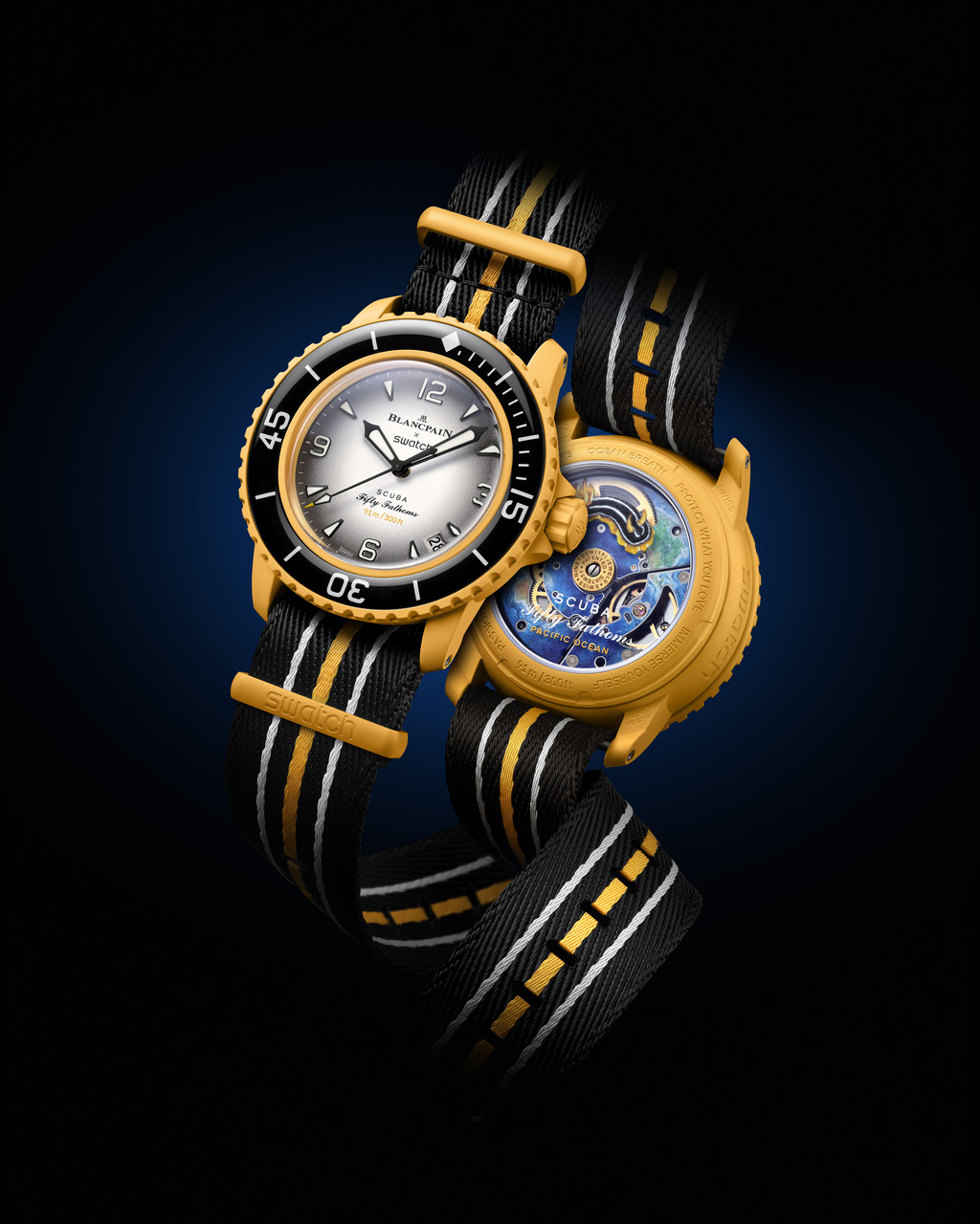 W ramach najnowszej współpracy, Swatch pragnie złożyć hołd temu kultowemu zegarkowi, prezentując pięć nowych modeli. Marka pozostaje przy tym wierna sobie w zabawny i żartobliwy sposób. Kolekcja Bioceramic Scuba Fifty Fathoms nawiązuje nazwą do zegarków nurkowych marki, linii SCUBA. Zegarki tej nielimitowanej kolekcji wiernie oddają wszystkie charakterystyczne cechy kolekcji Fifty Fathoms: doskonałą wodoszczelność, wyjątkową czytelność, mechaniczny werk, zabezpieczony obracający się bezel, a także antymagnetyczność. Tworząc kolekcję pięciu nowych modeli, marki Blancpain oraz Swatch czerpały inspirację wprost z głębin morskich. Nazwa każdego z nich nawiązuje do jednego z pięciu oceanów: ARCTIC OCEAN, PACIFIC OCEAN, ATLANTIC OCEAN, INDIAN OCEAN oraz ANTARCTIC OCEAN.