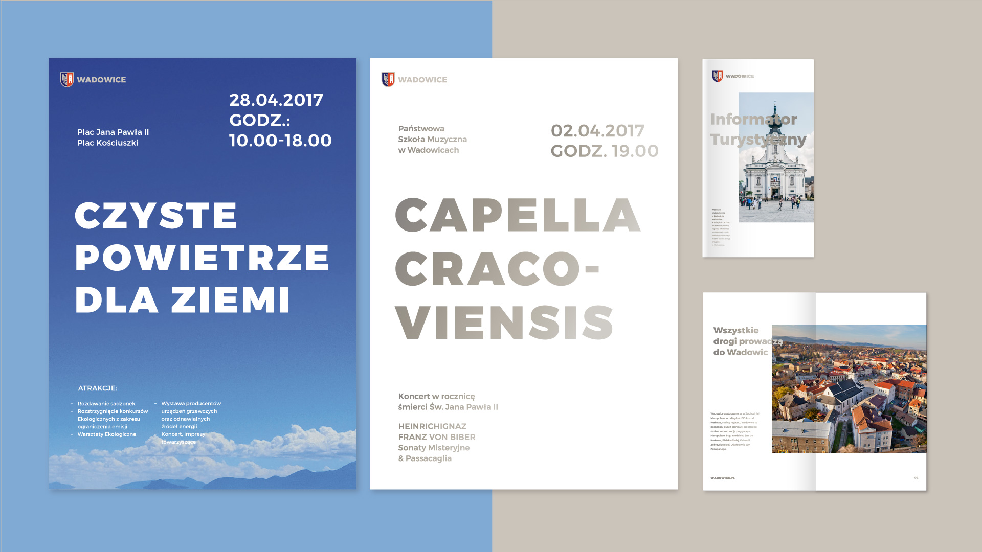Po nieudanych dwóch konkursach na nowe logo, ostatecznie pracę powierzono krakowskiemu studiu projektowemu – Studio Otwarte. Podstawą nowego znaku miasta został dawny herb Wadowic, który uległ nieznacznym zmianom.