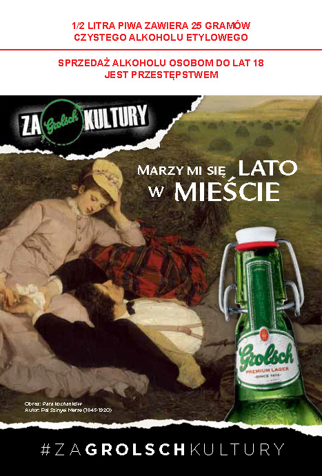 Koncepcja obu odsłon kampanii, inspirowana była ogólnoświatowym trendem sięgającym po klasyczne obrazy, za pomocą których, możemy komentować współczesność. Grolsch nowymi plakatami przedstawia działania, które realizujemy w ramach głównej inicjatywy Za Grolsch Kultury. Jesteśmy obecni na festiwalach, w wielu lokalach, które są swoistymi domami kultury i przede wszystkim na portalu wspieramkulture.pl, gdzie wspieramy twórców. Stąd kreacje nawiązujące bezpośrednio do tych działań i miejsc, w których można spotkać Grolscha – mówi Hubert Olczak, Brand Manager Grolsch w Kompanii Piwowarskiej Kampania przewidziana jest na warianty regionalne. Za kreację odpowiedzialny jest warszawski oddział GPD Agency. Działania digital i social media prowadzi agencja Lubię to. Planowaniem i zakupem mediów zajął się dom mediowy MEC. Działania PR zaplanowała i prowadzi agencja Tailor Made PR.