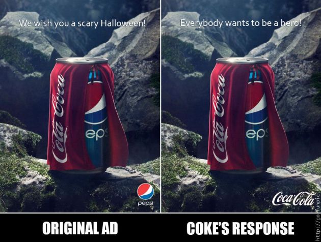 Pepsi wykorzystało Halloween, by „postraszyć” Coca-Colą. Po prawej stronie odpowiedź ze strony fanów Coca-Coli, którzy z humorem podeszli do zaczepki konkurenta.