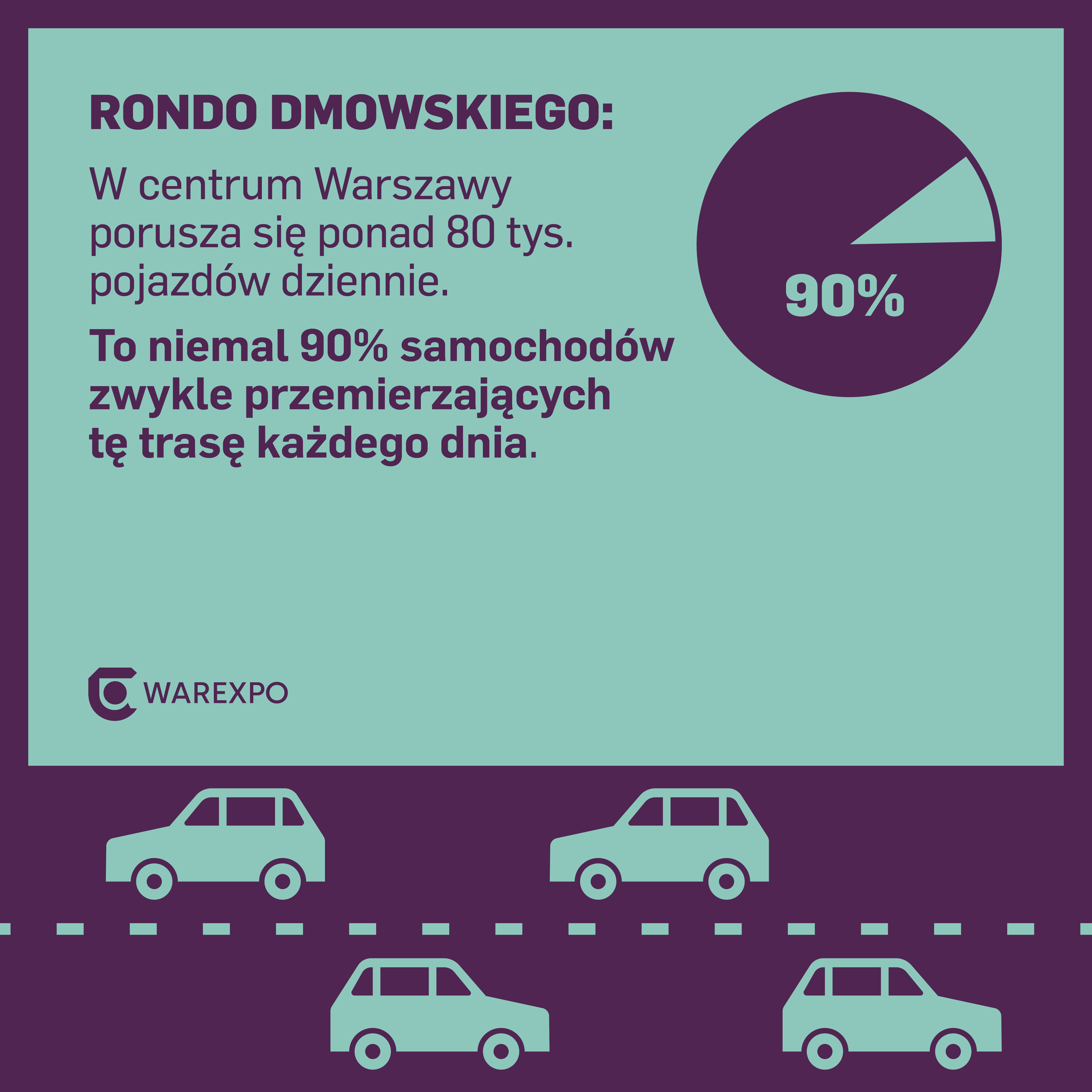- Rondo Dmowskiego -–aktualnie w centrum Warszawy porusza się ponad 80 tys. pojazdów dziennie. To niemal 90% samochodów zwykle przemierzających tę trasę każdego dnia. W pierwszej połowie maja ruch nie przekraczał jeszcze 70%.